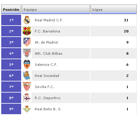 Os dejo un enlace aquí para que podáis ver en que año ganaron cada liga los equipos y algún detalle más